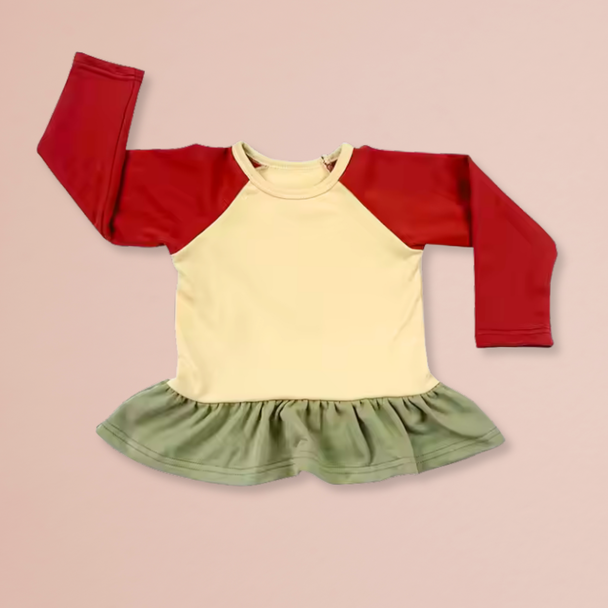 This adorable peplum style long sleeve shirt is available for preorder. Expected to ship early November 2025.