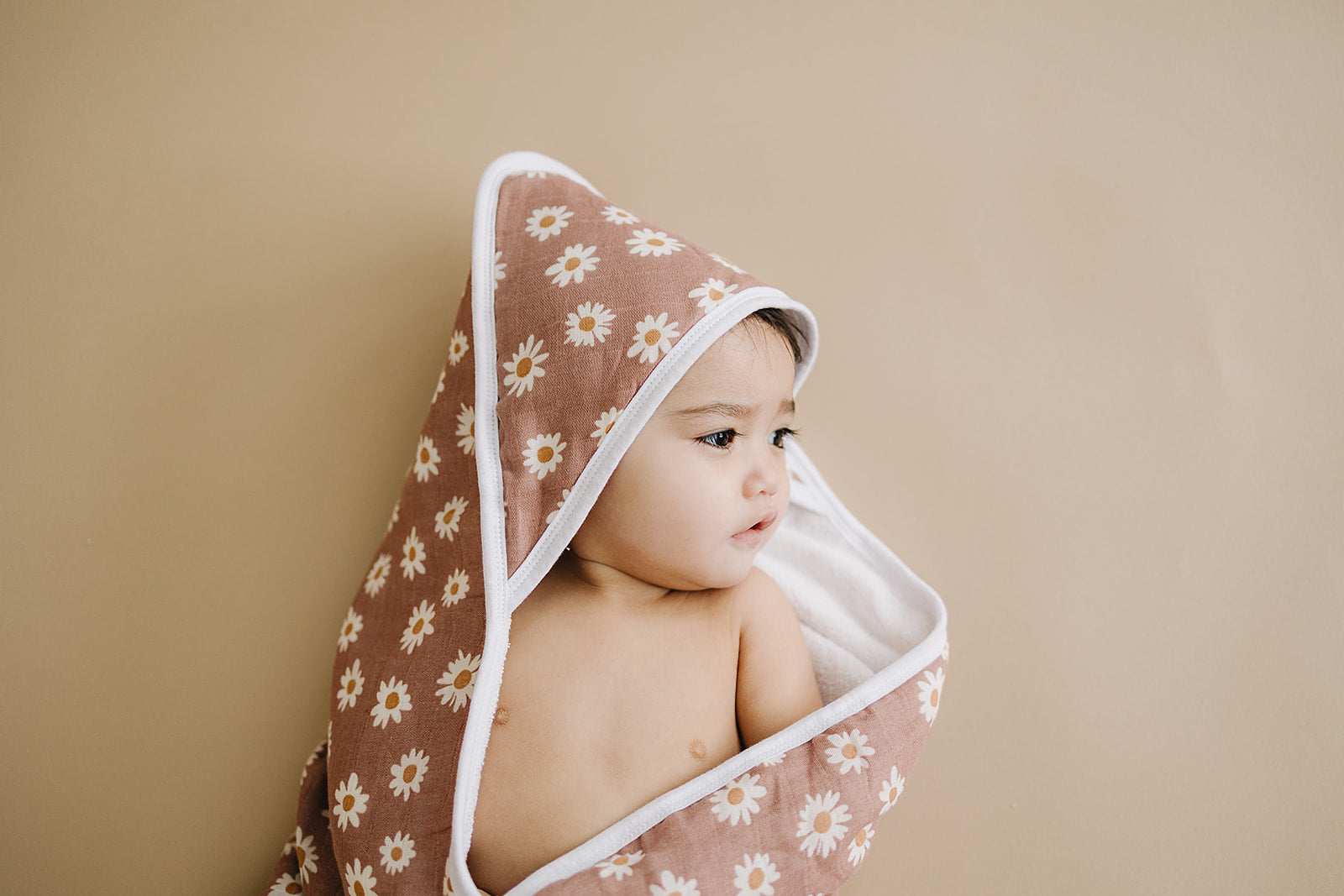Wrap your little one in the comfort and style of the Daisy Dream Muslin Hooded Towel. This towel is designed for babies and toddlers, featuring a charming neutral daisy floral pattern that adds a touch of elegance to bath time or swimming sessions. The cozy material and perfect size make it ideal for your child. The hood not only keeps their head warm but also helps dry their hair quickly. Not just a practical tool, this towel also serves as a beautiful bathroom decor piece. Pamper your little one with this functional and stylish accessory.