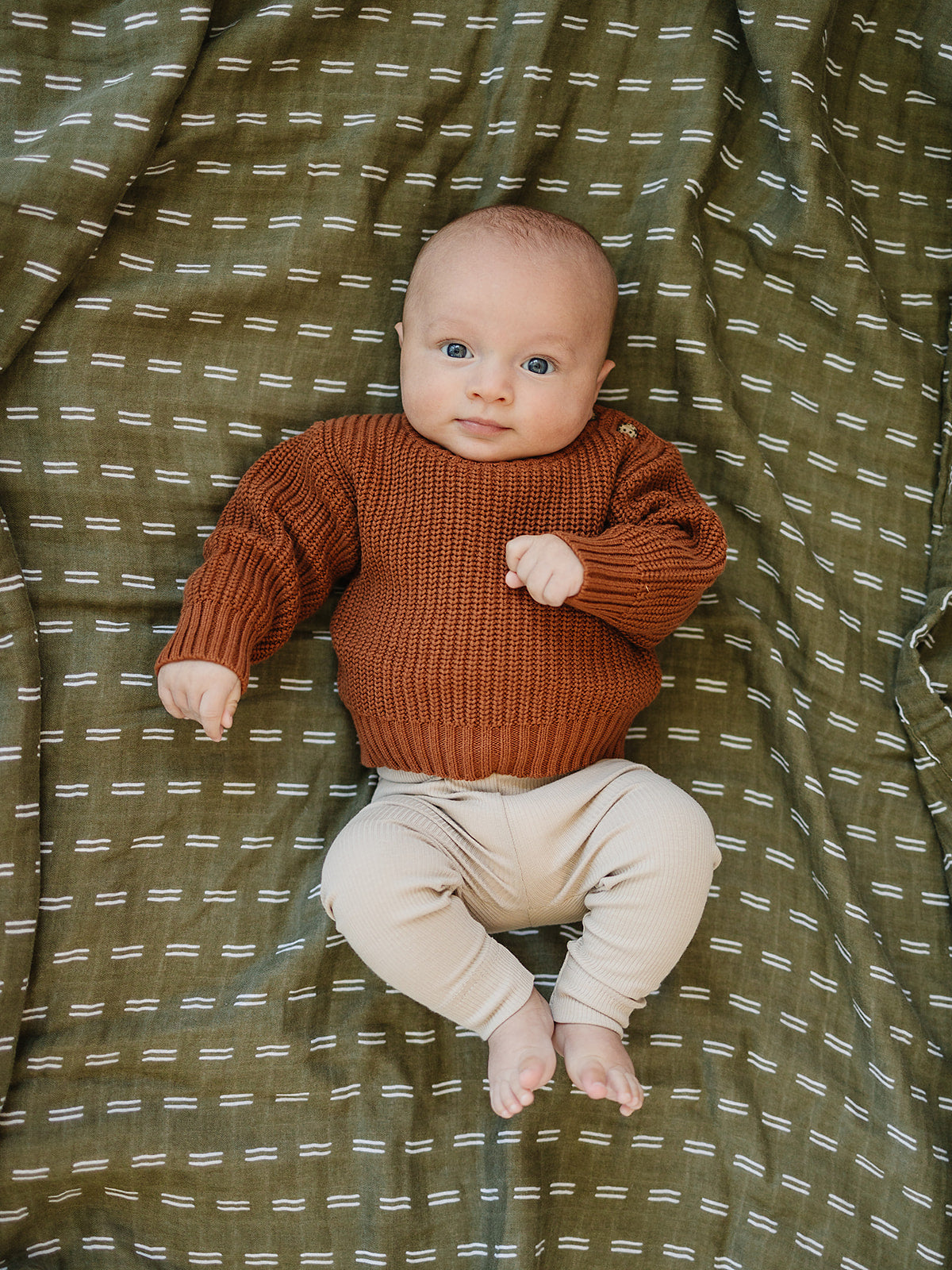 Wrap your little one in the cozy comfort of our Olive Strokes Muslin Quilt. Crafted from the same fabric as our beloved muslin swaddles, this quilt is four layers thick, providing warmth and softness. Ideal for older babies and toddlers, it is designed to become even softer with every wash, ensuring a gentle touch against your child's skin. The neutral olive strokes pattern adds a touch of elegance to any nursery or home decor. Not only is this quilt practical and durable, but it is also breathable, making it a versatile essential for both indoor and outdoor use. Embrace the beauty and functionality of our muslin quilt, a must-have item for any parent or caregiver.